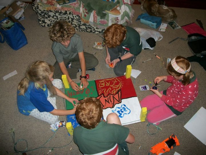 On est aussi resté à la maison pour aider à ranger la cuisine, nettoyer les vitres, et on fait des jeux avec Georges, Ben et Rosie, les enfants de la maison. Ils nous ont appris un nouveau jeu, NinjaGo où on doit faire tomber la toupie des autres avec sa propre toupie, et on a aussi fait un monopoly édition NZ et un crocket.