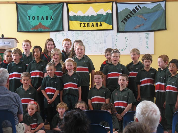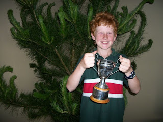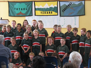 Les enfants n'ont passé qu'un jour à l'école, mais c'était LE jour du « prize giving ». Fin d'année oblige, tous les enfants et parents étaient réunis dans le « hall » (notre salle des fêtes) pour la distribution des prix de fin d'année. On a assisté bien sagement en fond de salle à l'hymne néo Z chanté par tous les élèves en costume scolaire, aux remerciements divers des familles donatrices, aux discours du directeur, des donateurs divers, des représentants des parents, d'un ancien élève maintenant au lycée, etc... Le tout dans une école qui compte seulement 2 classes pour à peine 50 élèves... Ben a eu le certificat de « l'envie d'apprendre et de faire du mieux possible » (ou un truc du genre) et Georges a gagné LA coupe de l'école, qui récompense l'élève travailleur, responsable, aidant avec les petits, … bref l'élève modèle de l'école. Cette coupe est mise en jeu et distribuée chaque année depuis … 1946 et avant lui, son père et sa tante l'avaient gagnée !