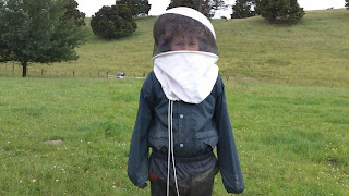 On a même vu l'installation des ruches avec nos habits de cosmonautes.