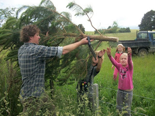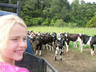 Tom et Phillippa (PJ) viennent de s'installer depuis un an et demi seulement. Ils ont repris la ferme des parents de Tom (qui faisaient plutôt des brebis) après s'être posé la question et avoir fait eux-mêmes du wwoofing en famille (6 mois) dans des grandes exploitations bio dans l'île du Sud. Vu que c'est le début de l'activité et que les agriculteurs n'ont aucune subvention ni aide à l'installation de la part de l'état, Tom travaille encore en ville pour l'instant. C'est donc PJ qui gère la ferme, la traite des vaches tous les matins à 6 h (ça, on n'a pas vu...), la préparation des 3 enfants pour l'école + leur lunch (pas de cantine), et tout le reste à la maison et dans la ferme. Elle n'arrête pas, mais a toujours la pêche et le sourire ; nous, on se demande un peu comment elle fait des fois....